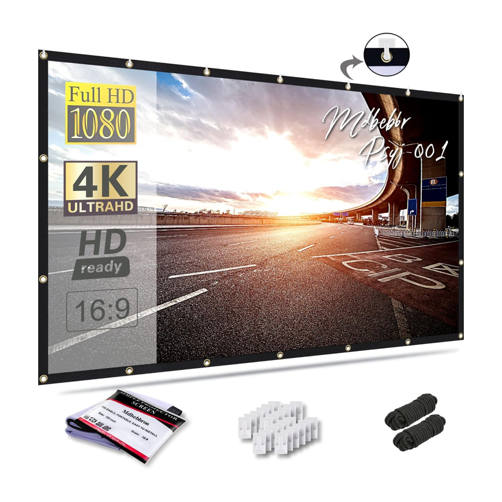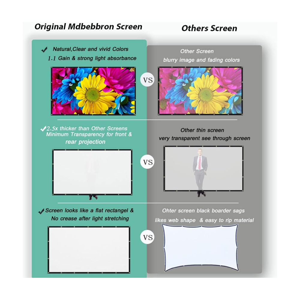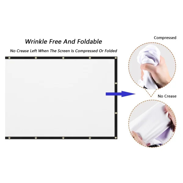 - ANTI-CREASE AND HIGH ABSORBANCE MATERIAL : Made with natural Polyester fabric that The projection is sharper and brighter than most other projection screens, The Projecor Screen are thicken and smooth, no wrinkle when folded / crushed.