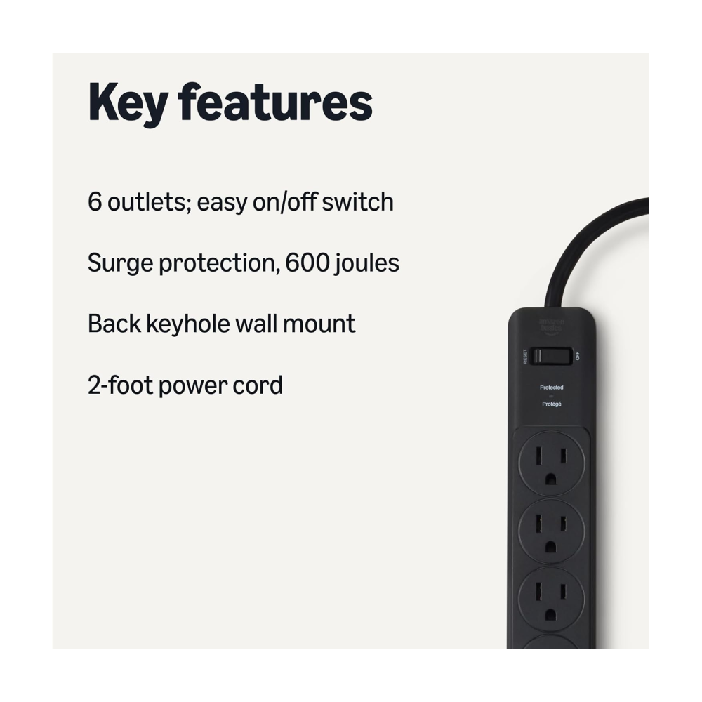 Be the first to review “Amazon Basics Rectangle 6-Outlet, 600 Joule Surge Protector Power Strip, 2ft, Black, Small, 2-Pack”