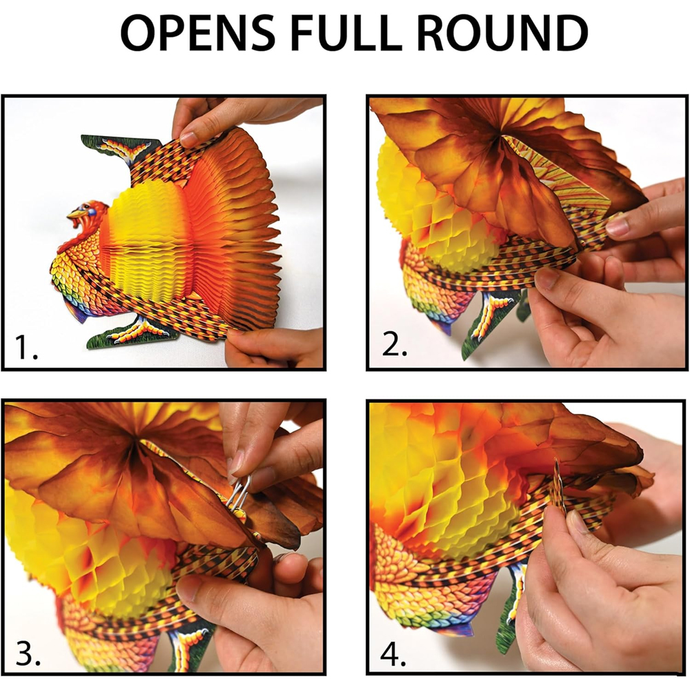 - EASY TO ASSEMBLE & REUSABLE Honeycomb tissue design unfolds into a full 3D turkey shape and folds flat for convenient storage and reuse each year