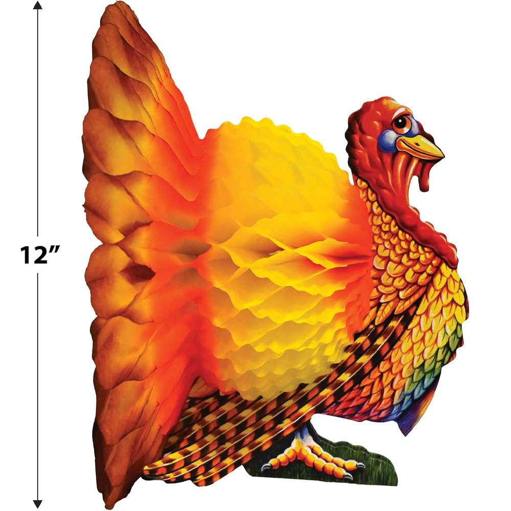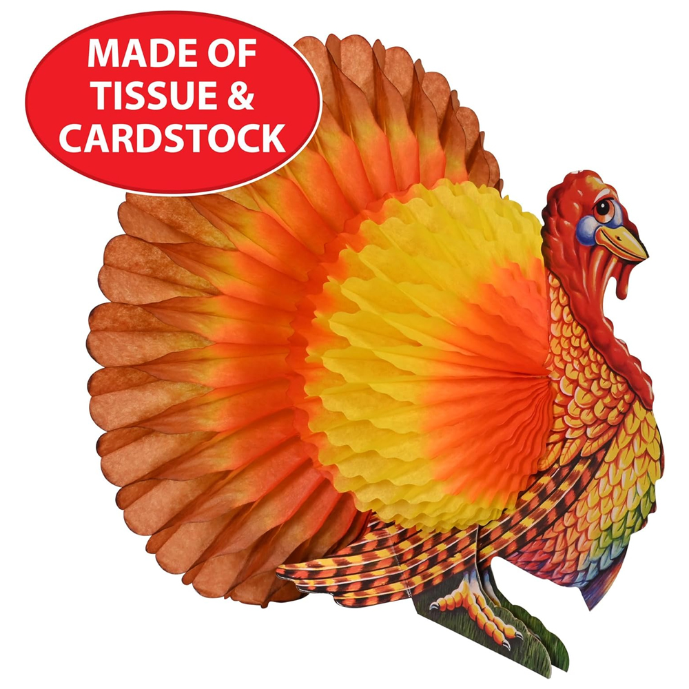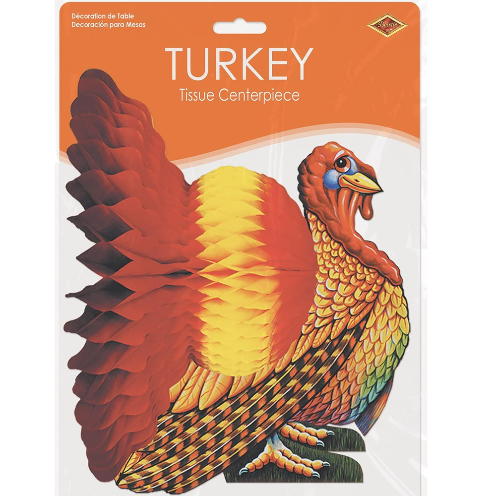 - CLASSIC THANKSGIVING CENTERPIECE Includes one 12-inch tissue paper turkey with detailed boardstock accents perfect for fall-themed table decorations