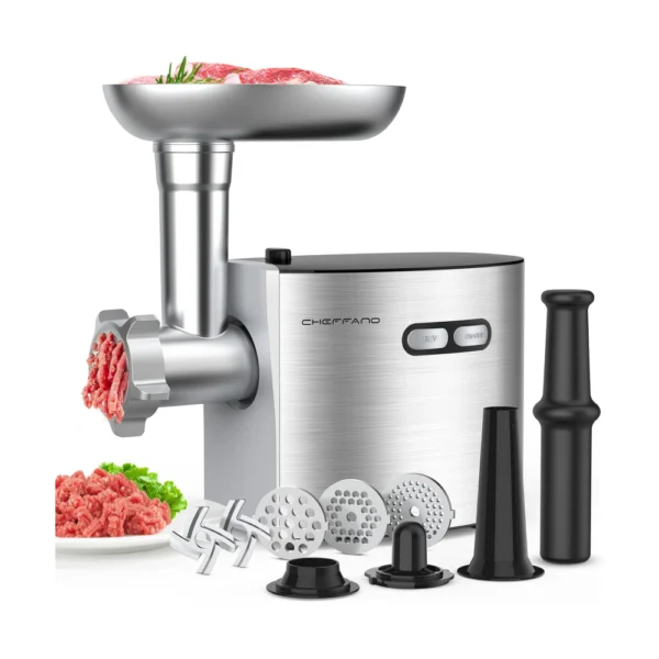 CHEFFANO Meat Grinder, 2600W Max Stainless Steel Meat Grinder Electric, ETL Approved Heavy Duty Meat Mincer Machine with 2 Blades, 3 Plates, Sausage Stuffer Tube & Kubbe Kit for Home Kitchen Use