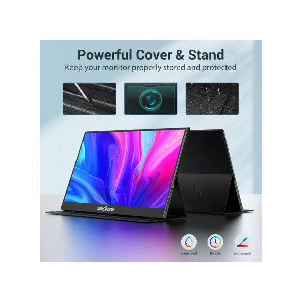 - [Versatile Cover and Stand] Equipped with a scratch-resistant smart protective cover made of durable PU leather, it can also be used as a stand when working. Two grooves are used to adjust the angle and fix the external monitor. It can also provide all-round protection for the 1080p monitor when going out or traveling, suitable for putting in a backpack to avoid squeezing. Optional landscape and portrait modes, save more desktop space