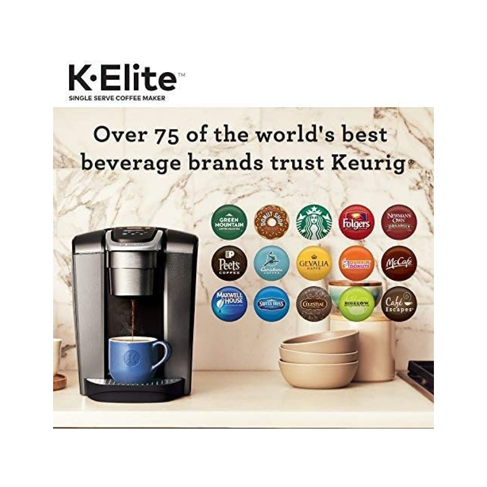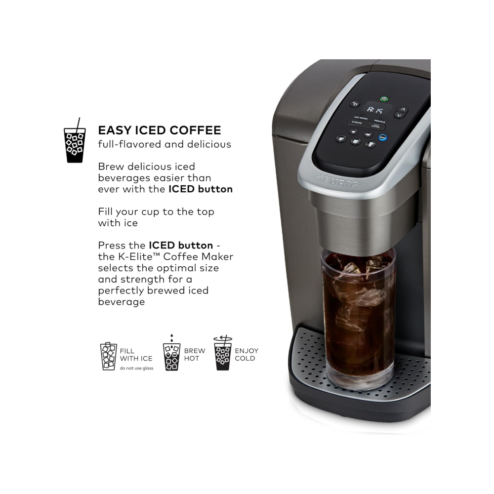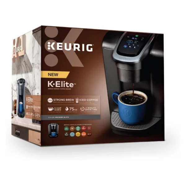 Keurig K-Elite Single Serve K-Cup Pod Coffee Maker, with Strength and Temperature Control, Iced Coffee Capability, 8 to 12oz Brew Size, Programmable, Brushed Slate