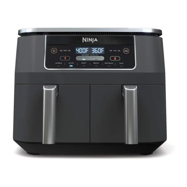 Ninja DZ201 Foodi 8 Quart 6-in-1 DualZone 2-Basket Air Fryer with 2 Independent Frying Baskets, Match Cook & Smart Finish to Roast, Broil, Dehydrate & More for Quick, Easy Meals, Grey