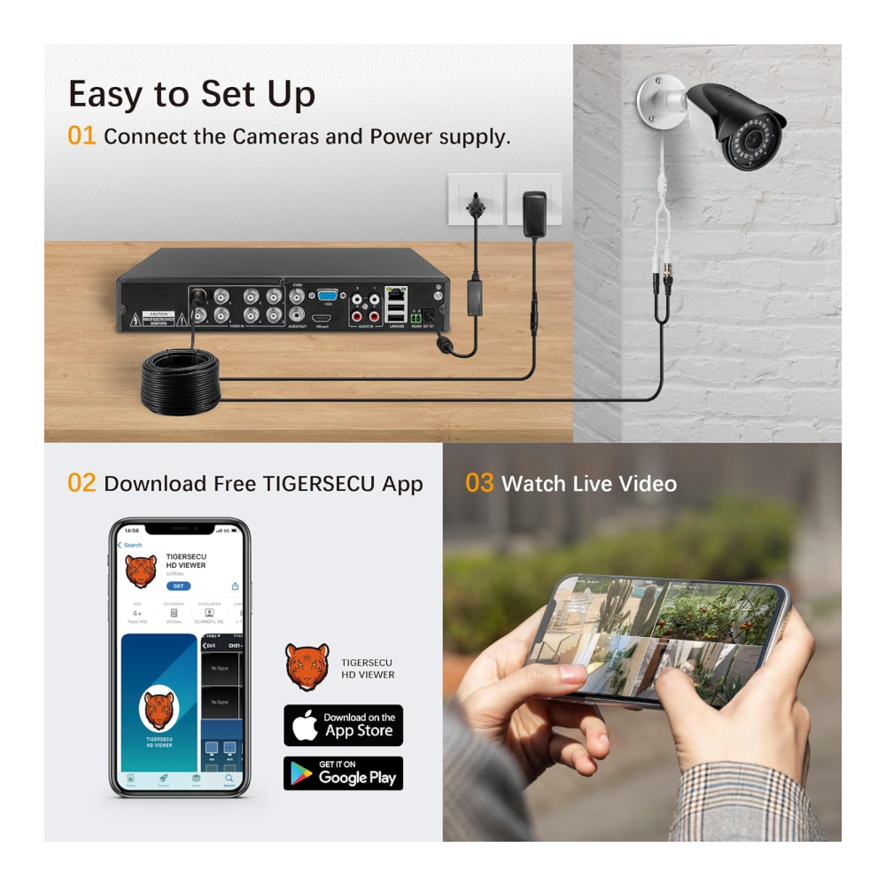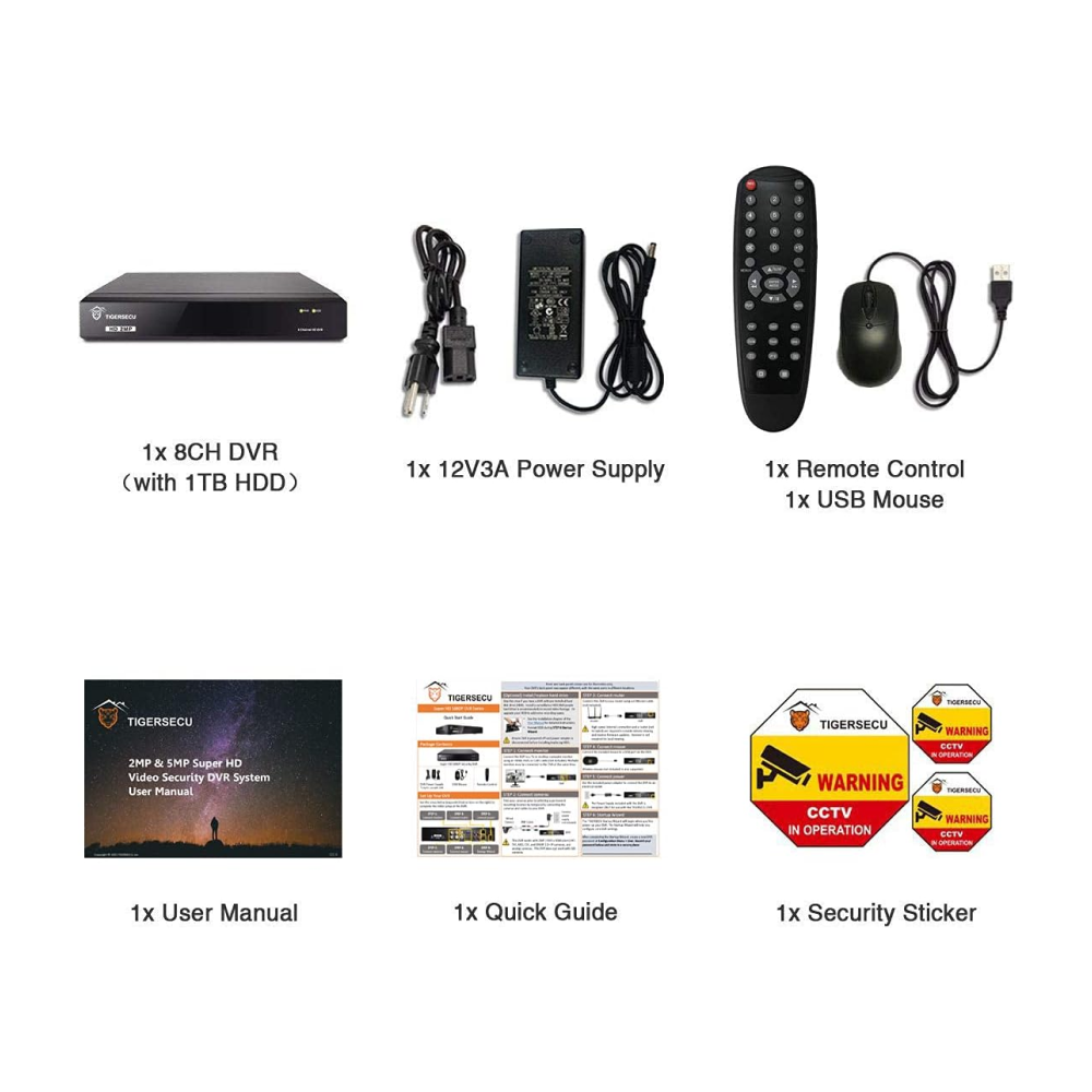 • This DVR is compatible with 2MP/5MP HD TVI, AHD, CVI, RS485 PTZ cameras and analog security cameras. For optimal performance, use this TIGERSECU DVR with TIGERSECU security cameras.