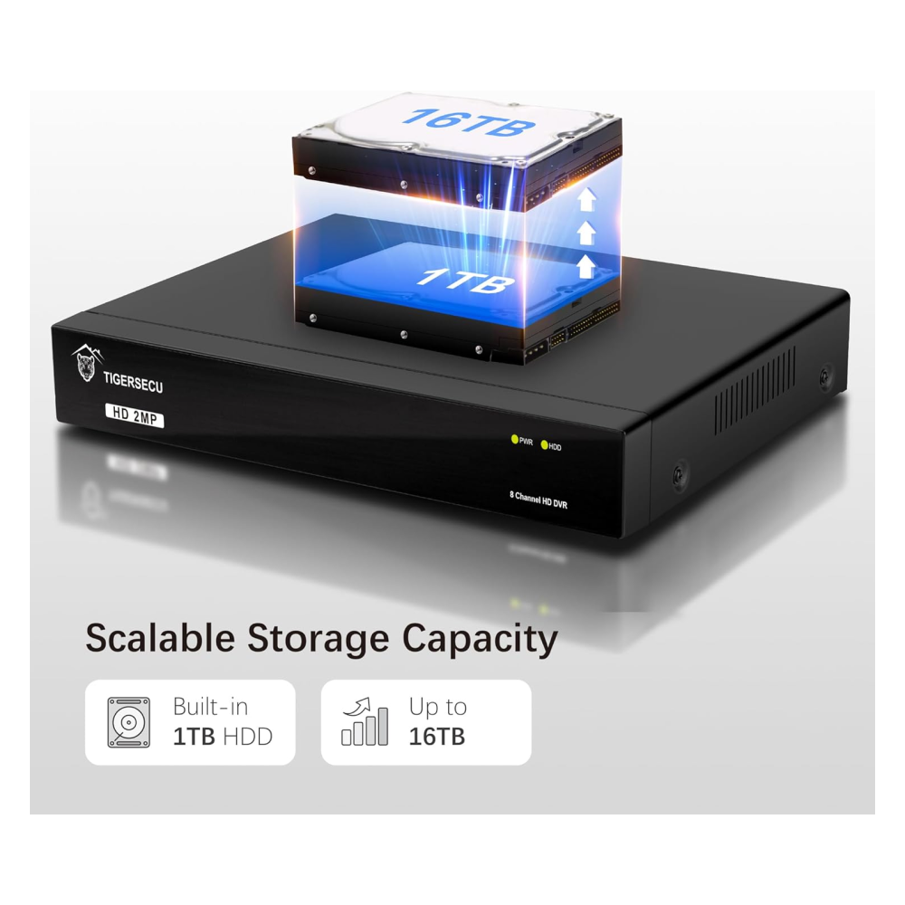 TIGERSECU Super HD 1080P 8 Channel DVR Security Recorder with 1TB Hard Drive, Hybrid 6-in-1 CCTV DVR Recorder Compatible with 2MP and 5MP TVI, AHD, CVI, Analog, RS485 PTZ and IP Cameras