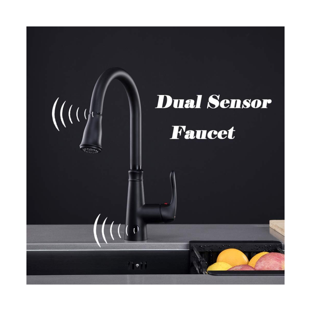 Touchless Kitchen Faucet with PullDown Sprayer,20 Single Kitchen Sink Faucets Black Pull Out Sprayer,High Arc Pulldown Single Handle for Motion Sensor,1handle 3 Hole Deck Mount,Black (Black)