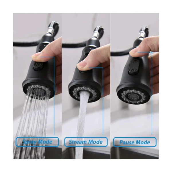 - 4. Easy to operate :fashionable design single handle easy to control water temperature and flow, 360 degree nozzle rotation can be achieved multi-functional full range of cleaning channels,(Road spray setting(STREAM,SPRAY,PAUSE)